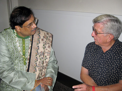 Guru Pandit Ajoy talking over an idea for American/Indian fusion music.